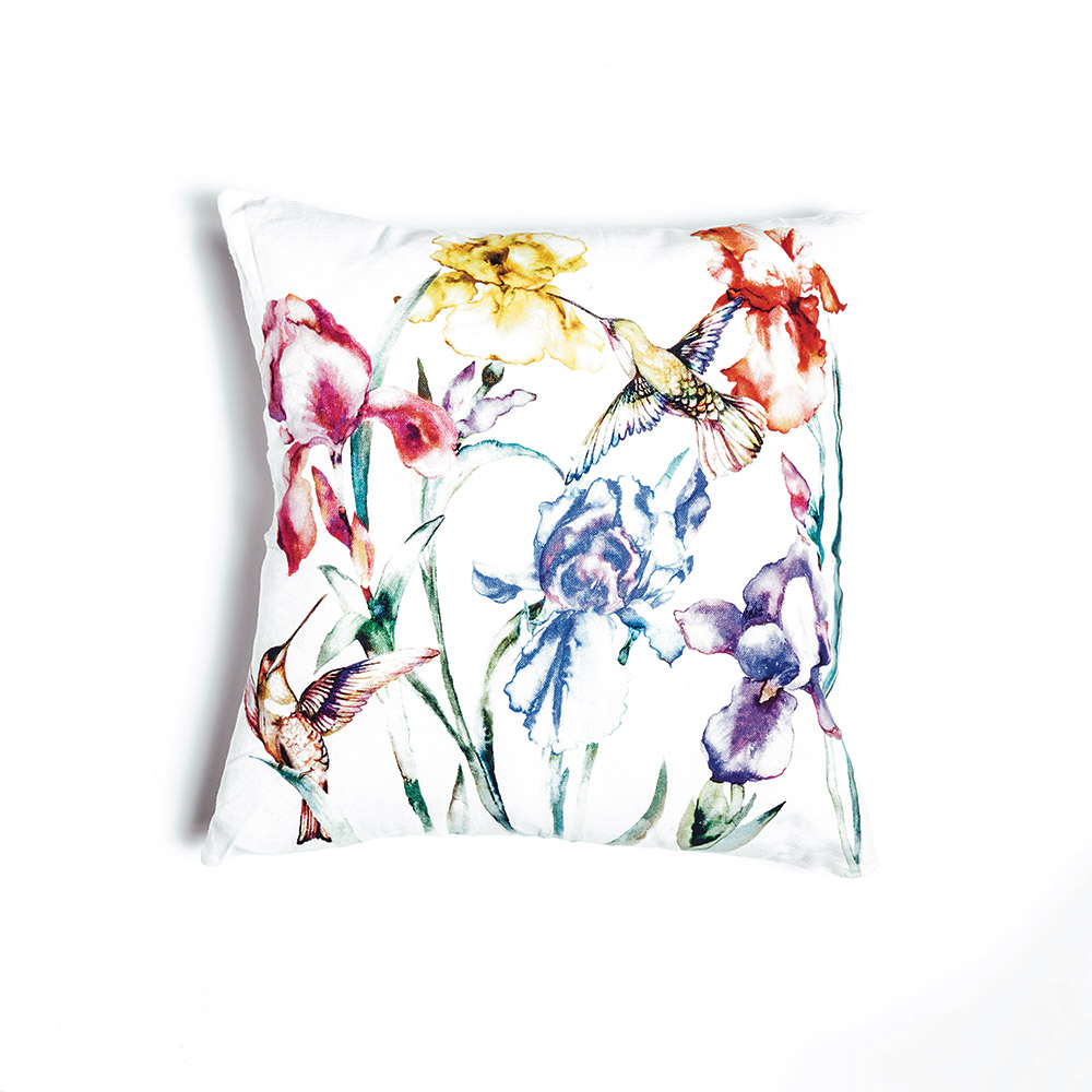 El cojín Silvestre cuenta con diseños botánicos en distintos y alegres colores. Perfecto para un evento primaveral o campestre.
