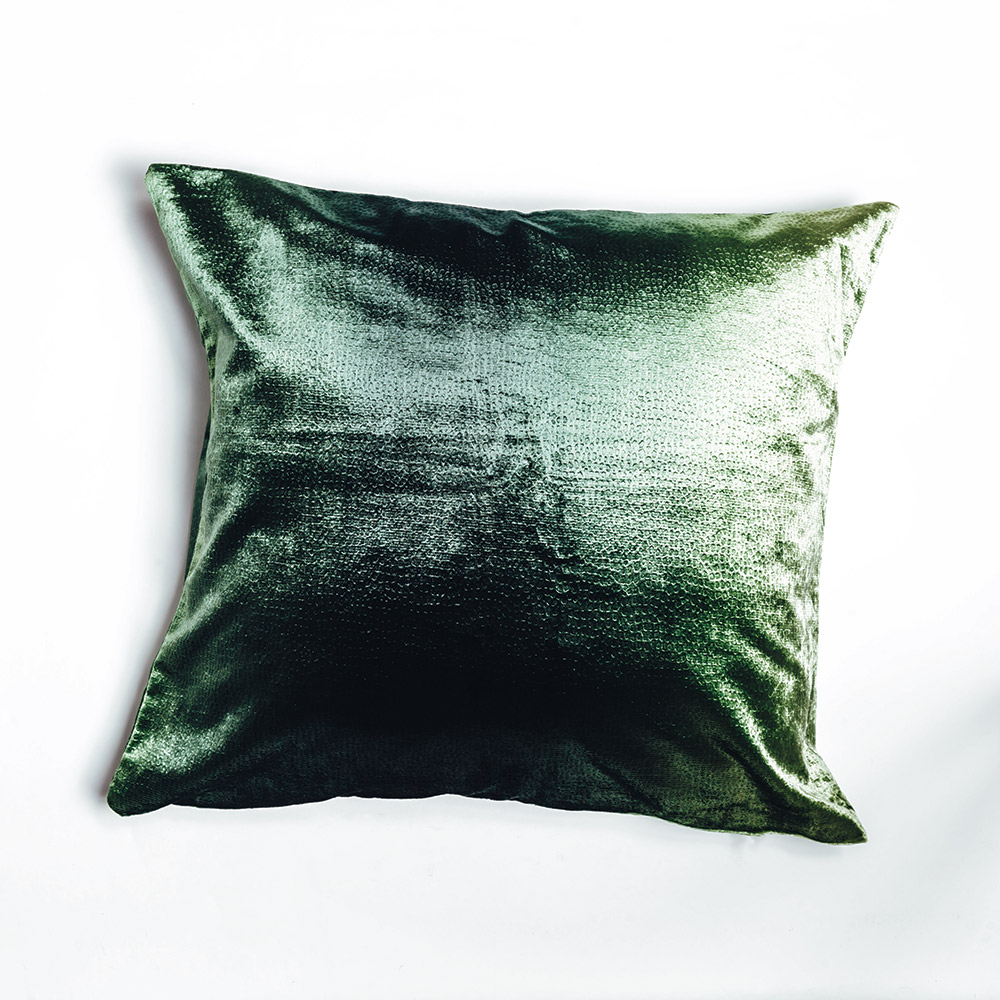 El cojín Syntax, fabricado en terciopelo verde, es un elegante cojín que ayudará a crear contraste y sofisticación en cualquier composición.
