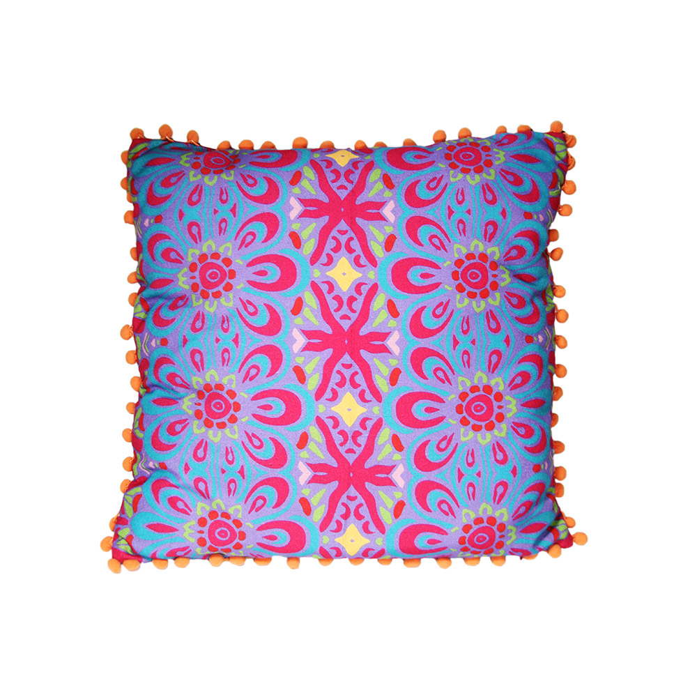 Un cojín con acentos mexicanos y mucho colorido.