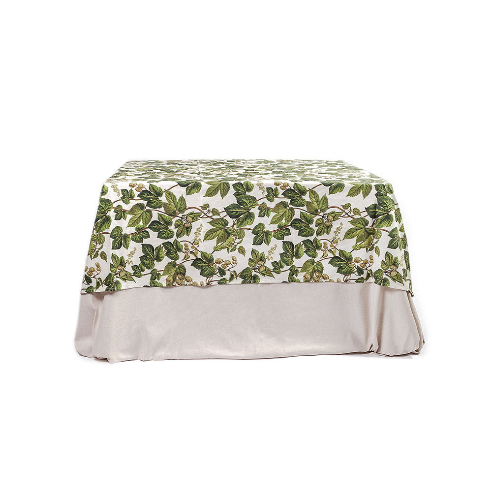 Nuestro Mantel Eucalipto, compuesto de 92% algodón y 8% lino, está estampado con un diseño de hojas y ramas en tonalidades verdes. Ideal para el campo y también para traer un poco del campo a la ciudad.