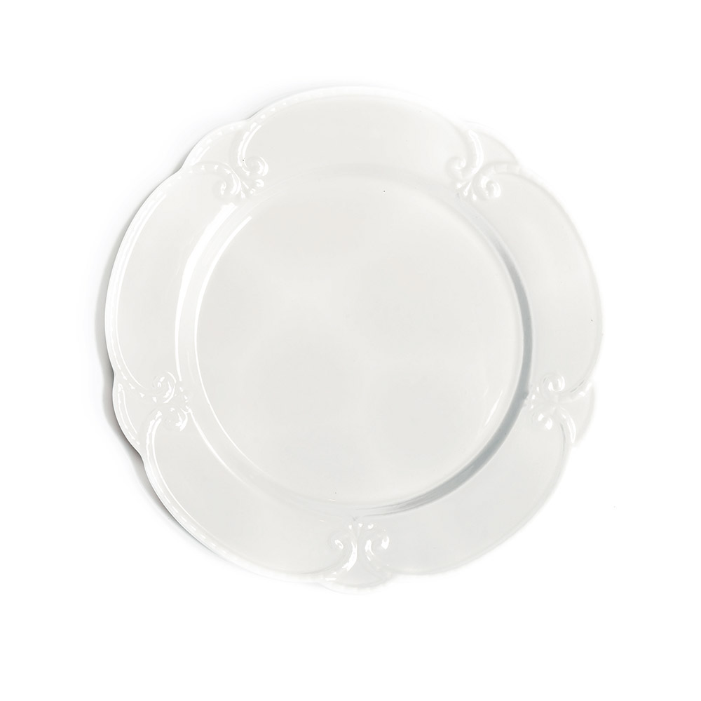 El plato de fondo Eloisa tiene un diseño y color clásico que combinará con cualquier vajilla. Sus detalles en relieve se verán especialmente resaltados cuando se usa todo el juego.