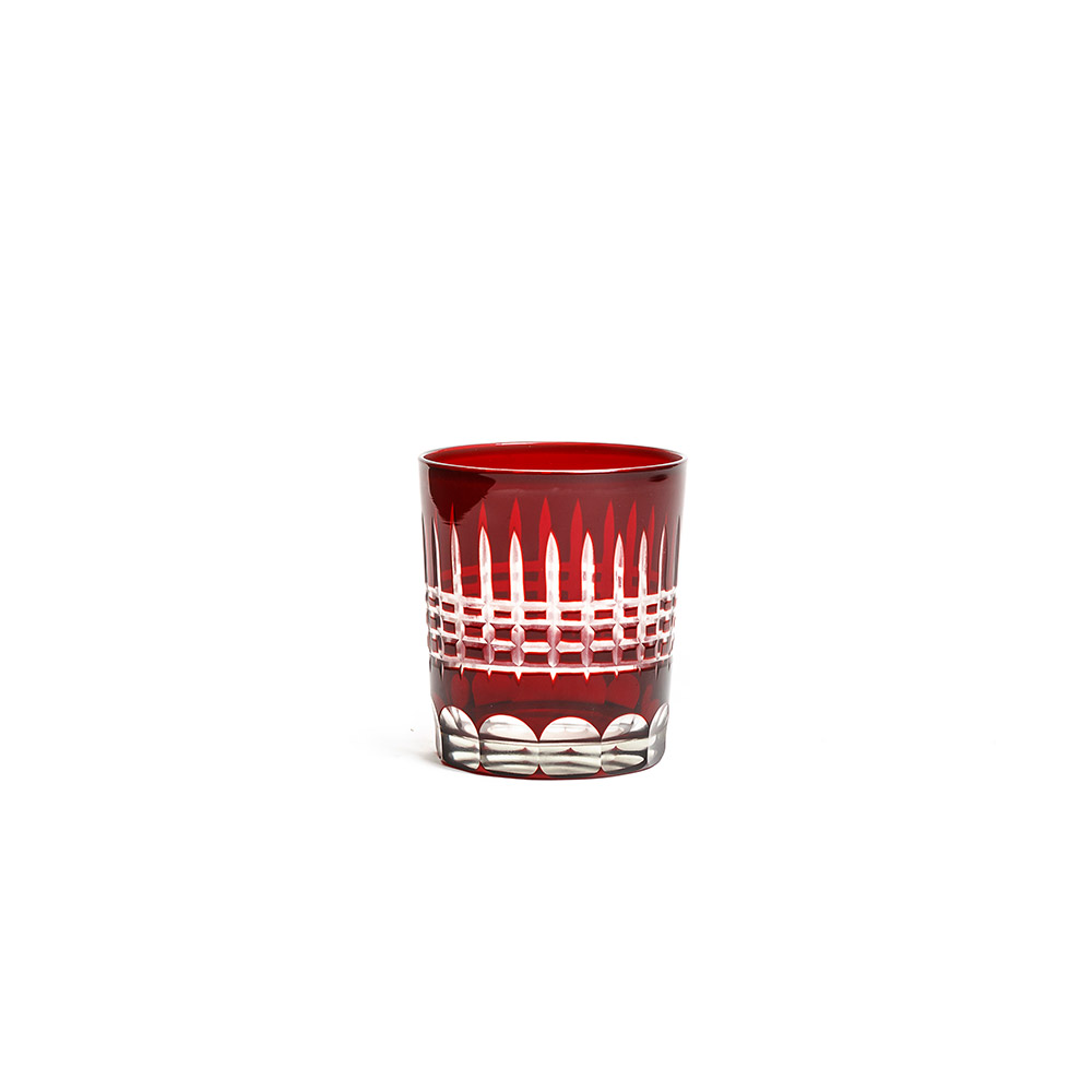 El vaso Aries, tallado y en un guinda intenso, le dará un toque de color único a tu mesa.